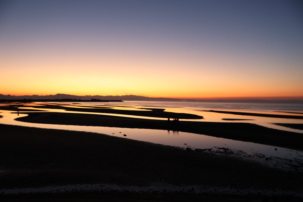 夕方には大分県にある真玉海岸へ行ってきました。日の入りには間に合いませんでしたが黄昏時のきれいな写真を撮ることができました。きらきらと輝く海とシルエットのコントラストがとても美しかったです。とても良いスポットのため大分に来た時には寄ってみてくださいね。